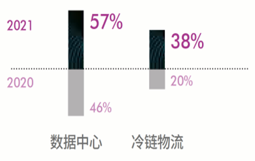 疫情后,投资者对另类资产的投资意向进一步增强,尤其是数据中心和冷链物流。2020年数据中心投资总额(含股权投资)超过36.8亿美元,同比大幅增长30%。而冷链物流的投资意向受到疫情后生鲜和医药冷链需求的爆发式增长的推动,较2020年增长近一倍。